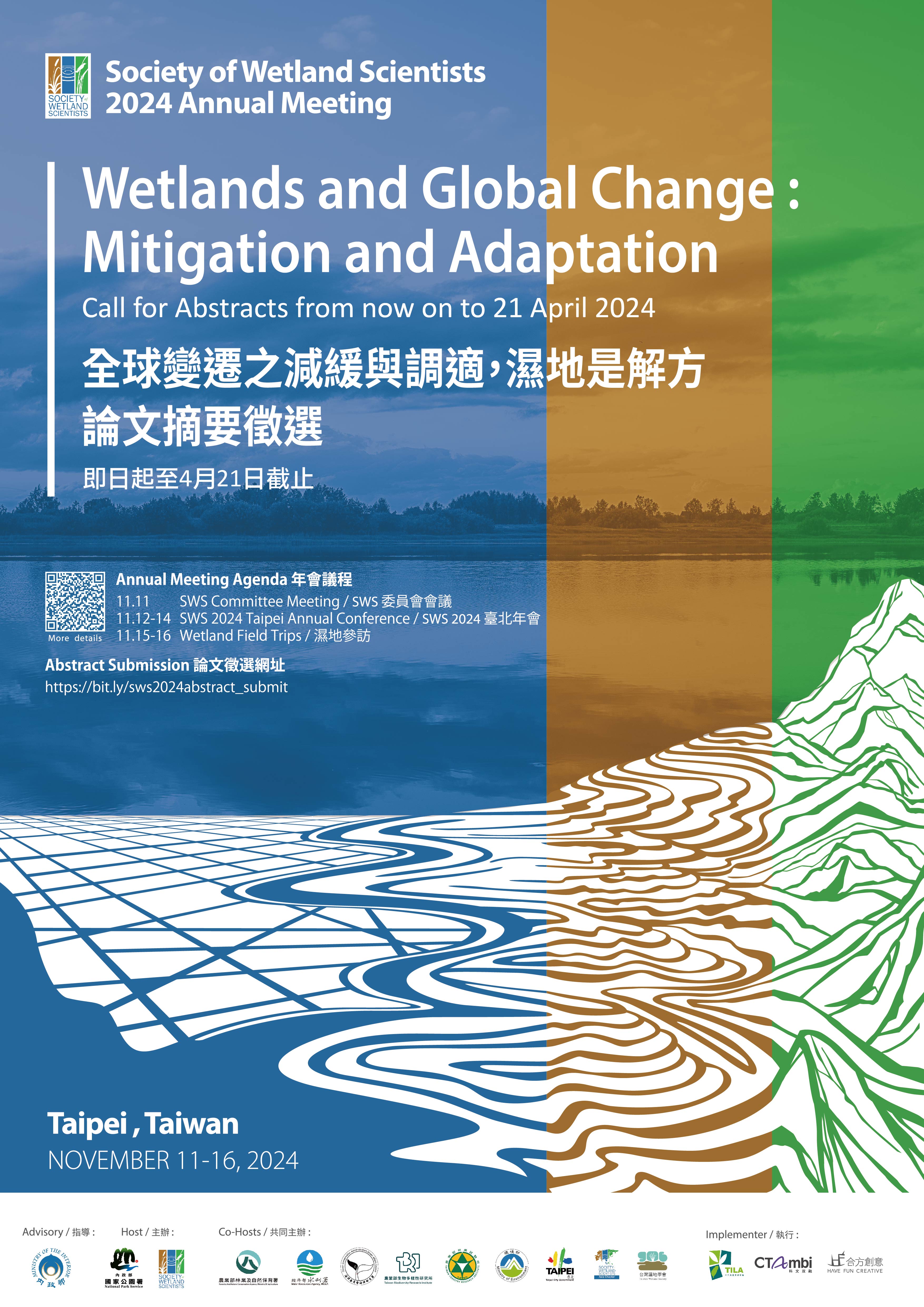 「2024國際濕地科學家學會SWS臺北年會」論文徵選海報及摘要投稿資訊,請踴躍報名投稿!
